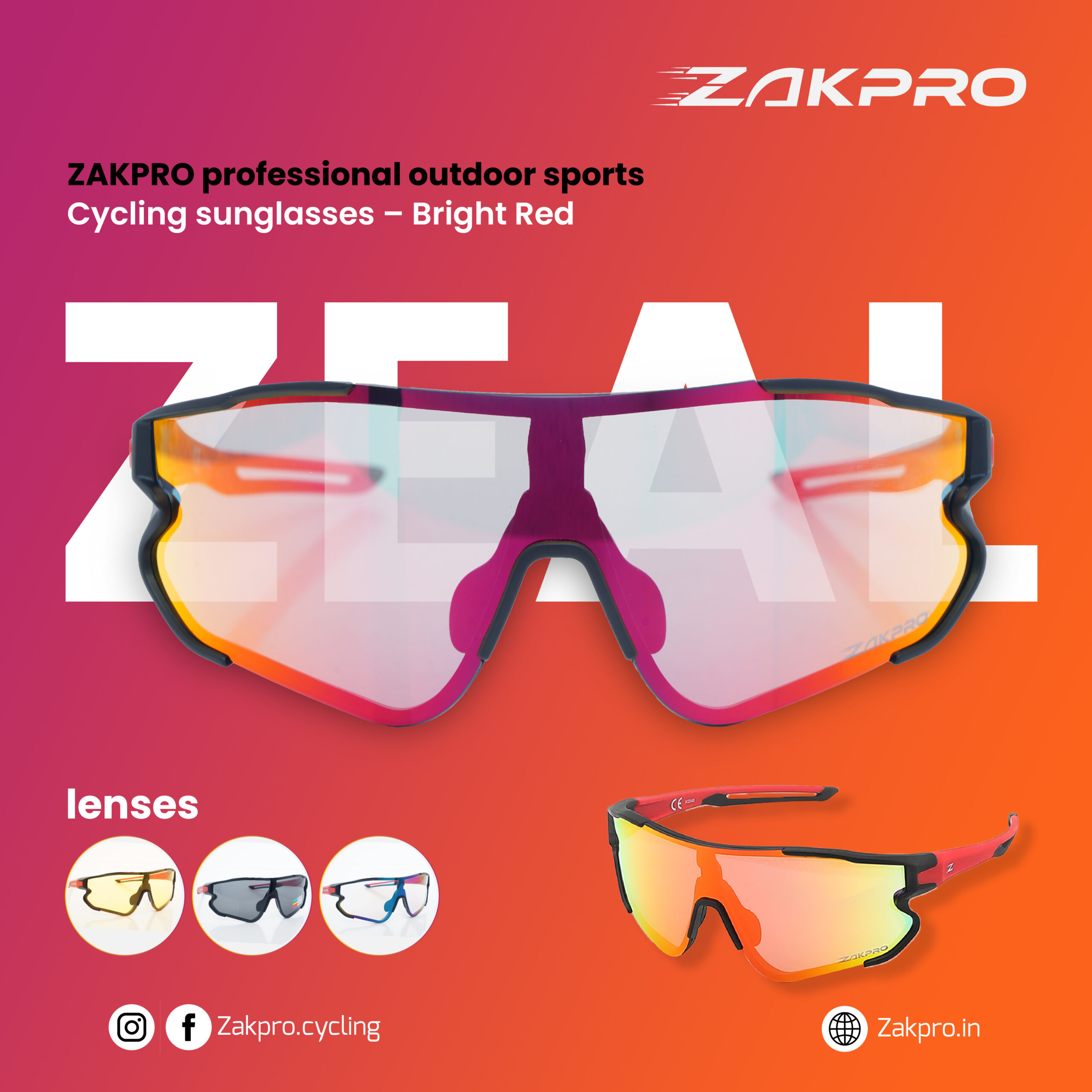 ZAKPRO Professional Outdoor Sports Cycling Sunglasses – Bright Red